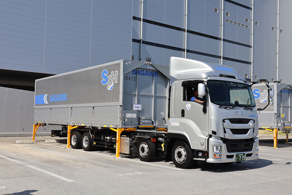 佐川急便ではスワップボディ車を約130台、スワップボディ車用のコンテナを約400台保有しており、佐川急便が契約するパートナー企業さまでは約80台のスワップボディ車を保有しています。