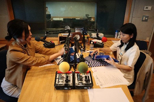 ラジオブースでは、“物流愛”に溢れるフリーアナウンサー小林千鶴さんがあたたかくお出迎えしてくださいました。なかなか手に入らない佐川急便旧公式キャラクター「はこぶくん」の定規を普段から使ってくださっている、という熱烈な物流ファン(佐川ファン?)の小林アナ。そんな小林さんとのトークは思った以上に弾み、リラックスして「佐川コラム」をスタートした想いやコラムの中では伝えきれていない裏話もお話してきました。