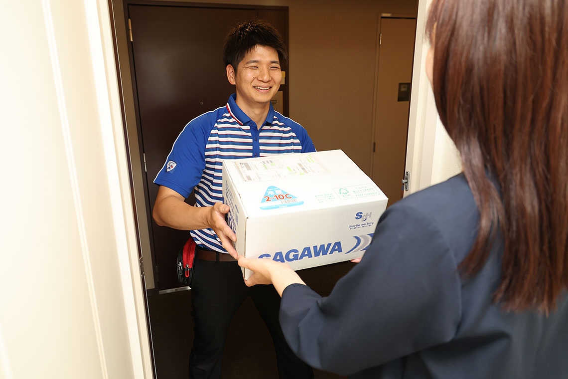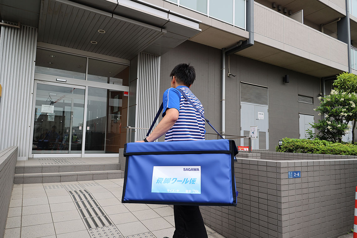 みなさんも、街で佐川急便セールスドライバー®が持って走っているところを見かけた方も多いかもしれません。なるべく外気に触れさせないようにすることで、飛脚クール便の品質を維持しています。