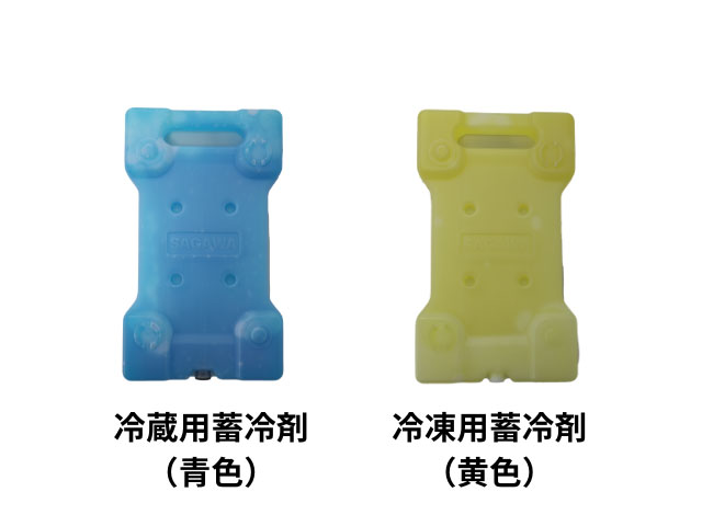 蓄冷剤は温度管理の徹底に欠かせないアイテムです。車両の冷蔵・冷凍庫内や保冷ボックス、配達用ショルダーバッグなどに入れて、保管時の温度を維持しています。毎朝、当日の最高気温をチェックしてから使用する蓄冷剤の枚数を確認しています。また、冷蔵と冷凍では管理する温度が異なります。そのため、それぞれの保冷剤の種類も異なることから、色分けをして使用しています(冷蔵用は青色、冷凍用は黄色)