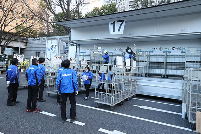 「毎年同じことをしているように見えるかもしれませんが、実は状況によって準備内容は大きく変わります。だから、まずはスタートとフィニッシュエリアの現場調査から始まります。各エリアにトラックやカゴ台車※を何台配置できるか正確に測定します。この地道な作業が、イベントを成功に導くための最も重要な下準備なんです」