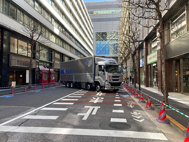 「決して駐車マナーが悪いわけではありません(笑)。マラソンコース周辺の道路はほとんどが交通規制されています。そのため、広い道路に大型トラックを停車させ、道路の封鎖を手伝っています」