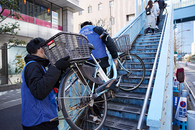 「規制された道路を横断するのは簡単ではありません。地域住民の方々にとって普段の生活に支障が出ないように、たとえば歩道橋を使って自転車を担ぎ渡るお手伝いなどのサポートをボランティアの方々と一緒に行っています」