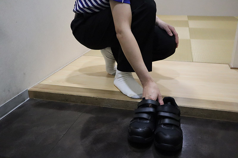 しかし、通気性と速乾性により臭いがこもるのを軽減する仕様になっているため、お客さま先で急に靴を脱ぐことになっても全然もじもじしなくていい!