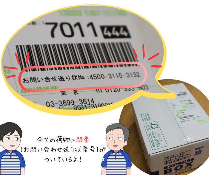 「問番(といばん)」とは、送り状に書かれている“お問い合せ送り状番号”のこと。