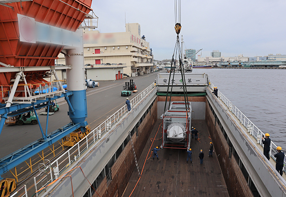 全国ネットワークを活かし、特殊車両(低床トレーラー)を手配。地元の港湾事業者とも連携し、円滑な運行体制を整えました。