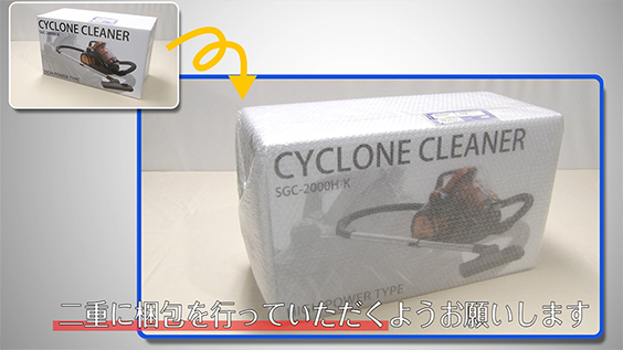 ダンボールやエアー緩衝材で包むなど二重に梱包を行っていただくようお願いします。