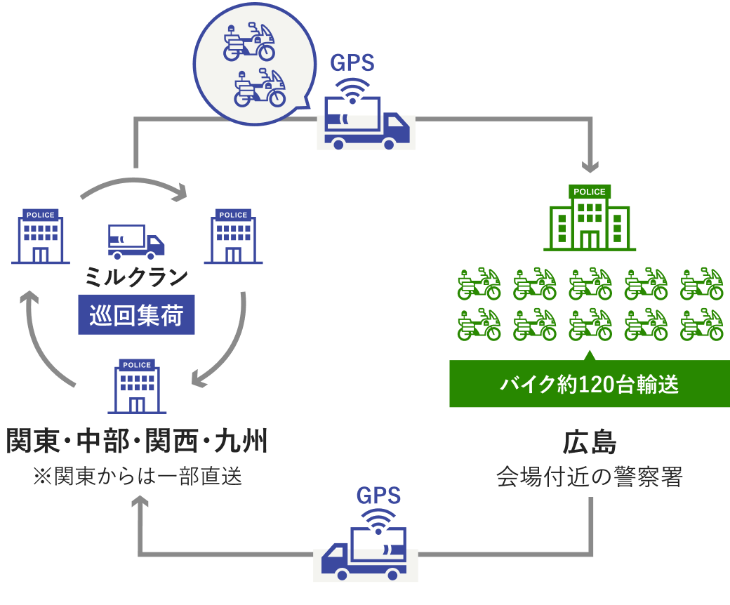 全国約120台の白バイをサミット会場へ——ミルクラン回収で大規模特殊輸送を実現