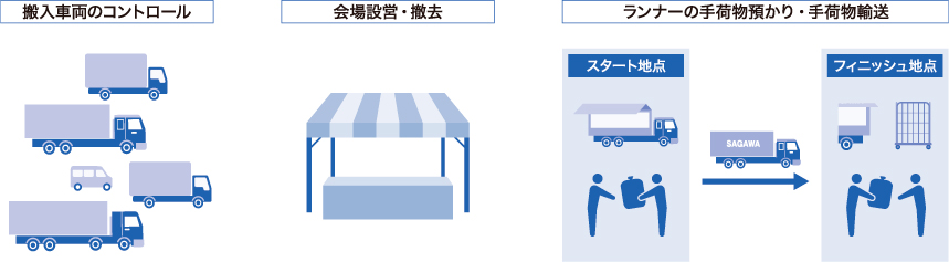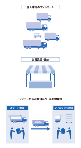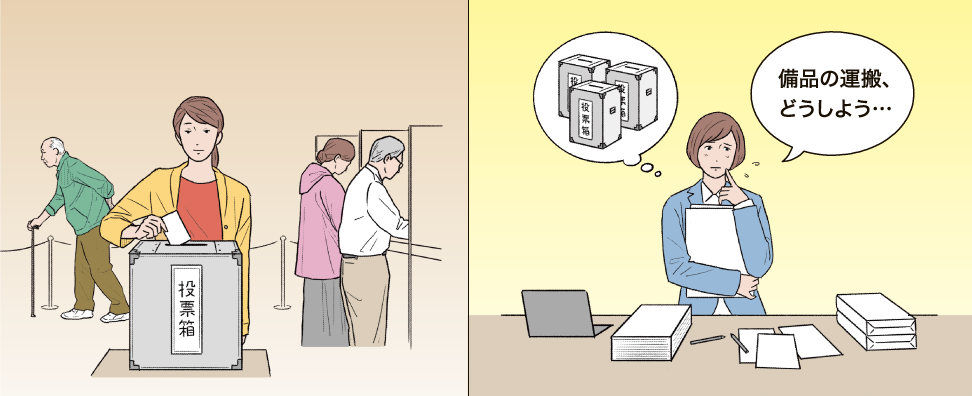 - 投票所・場所・規模に応じた車両・ルートを設定し、輸送・回収を行う