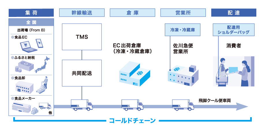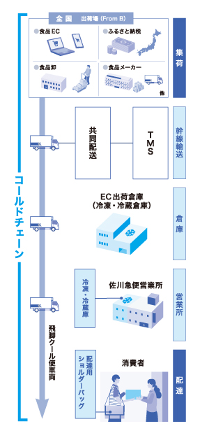 - 冷凍・冷蔵食品を全国に安定して届けたいが、生産地から消費地までの温度管理を伴う一貫輸送や、地域ごとの保管・出荷体制の構築が難しい。