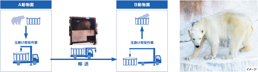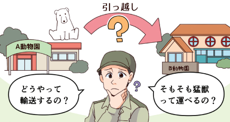 - ホッキョクグマを動物園間で輸送するに当たり、輸送のノウハウがなくて困っている