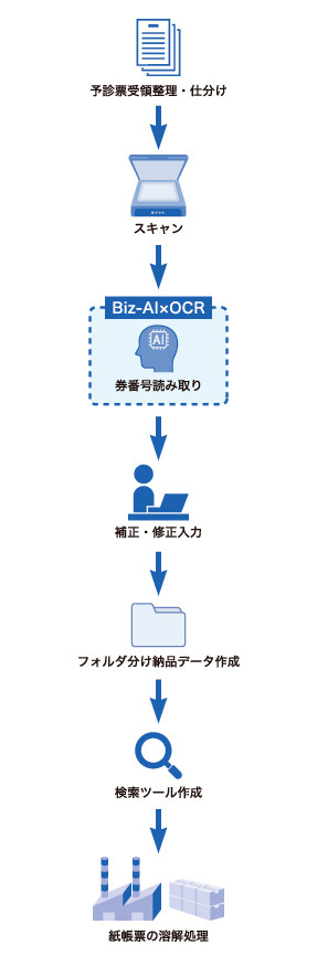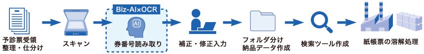 - 予診票をスキャニングセンターで電子化し、AI-OCR技術で券番号を正確に読み取り