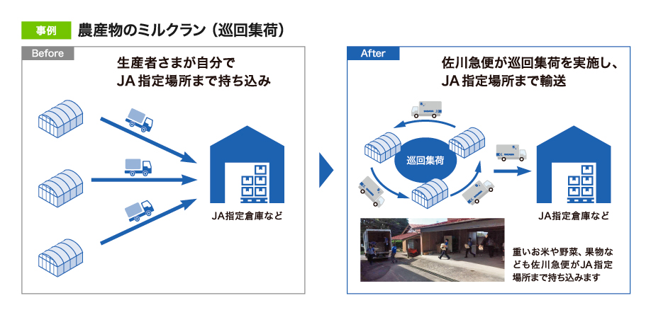 一部の営業所では、グループ会社の佐川グローバルロジスティクスと連携して、梱包・出荷作業も請け負っています。生産者さまは梱包・出荷の手間が減り、生産に集中できるので、出荷量拡大につなげることができます。