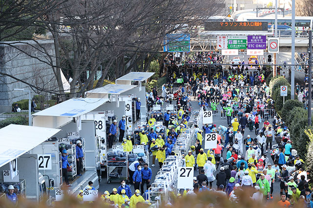 「スタート2時間前の7時からランナーの手荷物預かりが開始。