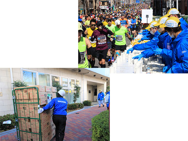 「実はあまり知られていませんが、ランナーの方が飲まれるドリンクや食料の輸送も佐川急便が担っています。その数は、コップだけで約854,800個と、膨大な量にのぼります」