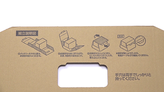 組み立て方法はバッテリーを中央に置き、このように折ります。