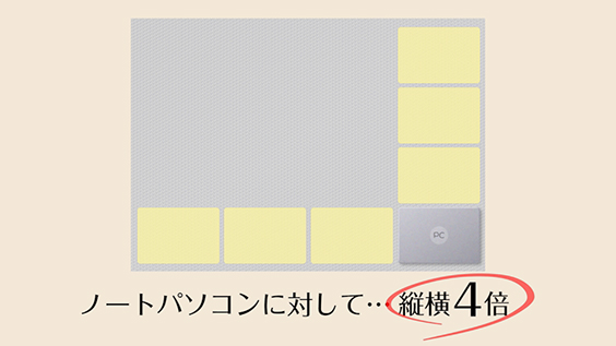 梱包資材が残っていない場合は、ノートパソコンに対して、縦横4倍の大きさの緩衝材を用意します。