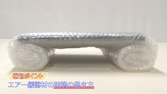 ポイントはこちら。エアー緩衝材の両端の巻き方です。