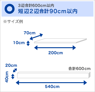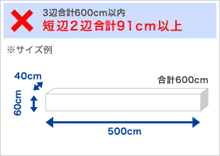 3辺合計600cm以内でも、短辺2辺合計が90cmを超える場合は長尺物に含まれません。