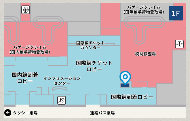 青森空港旅客ターミナルビル 1階 国際線到着ロビー内 - TEL