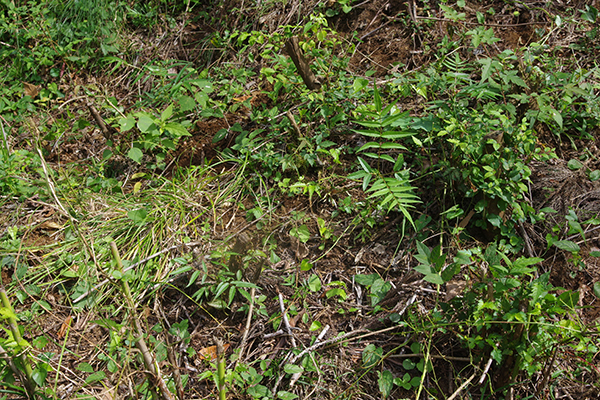 初夏と比べると、緑の量がだいぶ増えたことに気づきます。ササやエゴノキなどの樹木が、切られた株の根元から盛んに枝葉を伸ばし、一気に再生してきたようです。